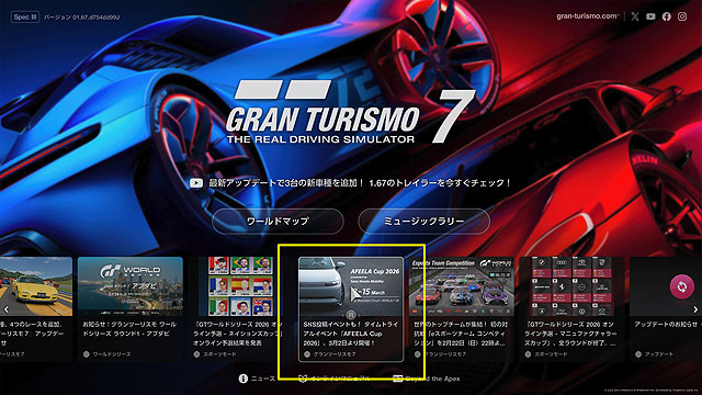 PlayStationのゲームタイトル「グランツーリスモ7」にて「AFEELA Cup 2026 presented by Sony Honda Mobility」が開催されています。