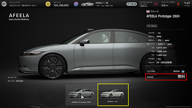 ソニー・ホンダモビリティの企画でゲーム内のクレジットやPlayStation Storeカードのプレゼントがあります。