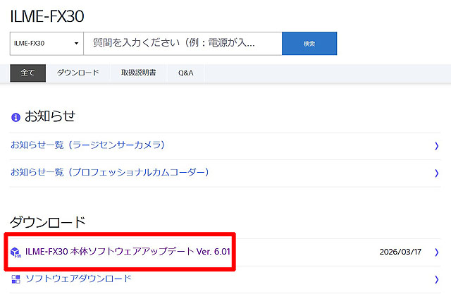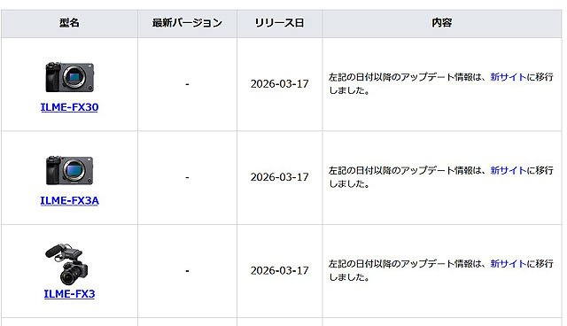 当店のお客様ではご利用の方は多くありませんが、「FX3」「FX3A」「FX30」の本体ソフトウェアアップデートが公開になりました。