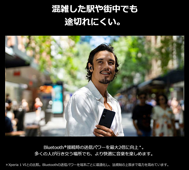 なお、今回使っている「Xperia 1 VII」も実はすごい機種で、Bluetoothの出力を端末ごとに最適化し、法規制の上限まで電力を高めているとなっており送信出力が強化されたモデルです。