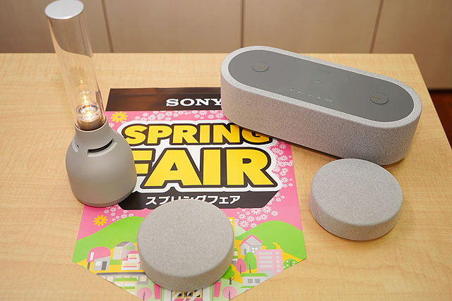 そして4月からの新生活。ソニーにはちょっと変わったワイヤレススピーカーがあります。ポータブルシアターシステム「HT-AX7」とか、お部屋にあると生活が変わるかも! こちらのスピーカーも店頭展示していますので、お試しになってみてください。