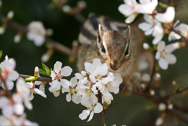 こちらのカットは瞳にAFポイントはきていなかったんですが、それでも被写体としてはシマリスを認識しているので、ちゃんとフォーカスはシマリスにあっています。