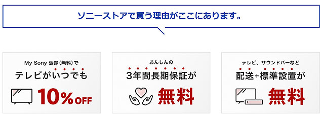 ソニー提携カード決済で3%オフ テレビ基本設置サービス 無料提供 |
