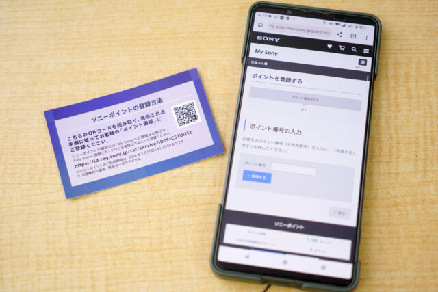 登録方法はプレゼントされたカードの裏面にQRコードがあり、これをスマートフォンで読めば、ポイントの登録画面がすぐに表示されます。ソニーアカウントでログインしていれば、すぐにポイント登録ができます。