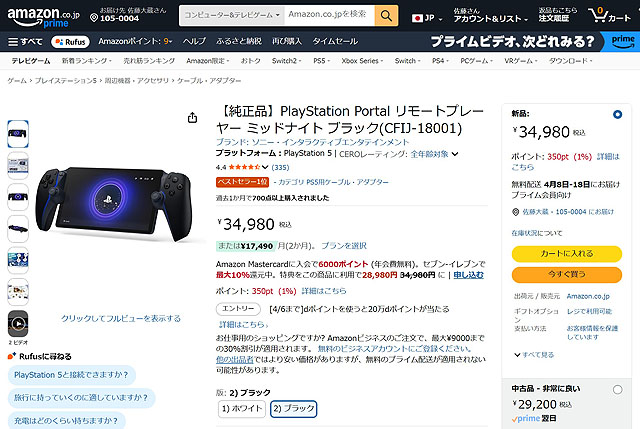 PS PortalがAmazonで値上げ前価格のまま販売中 ソニーストアは受注一時停止中