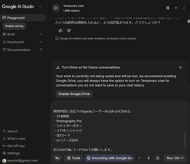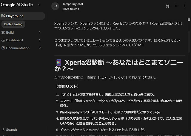 Google AI Studioでできること Xperia沼、ソニー沼診断アプリをHTMLで生成して記事内に掲載