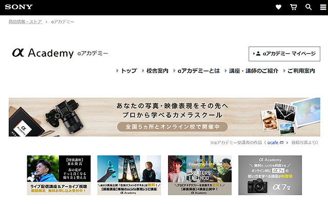 単なるYouTube配信と違って、αアカデミーのオンライン校での特別配信となっています。なので、無料で受講できると言っても、何もせずにみられるというものではなく、My Sony IDを取得して、αアカデミーから受講申し込みをする必要があります。