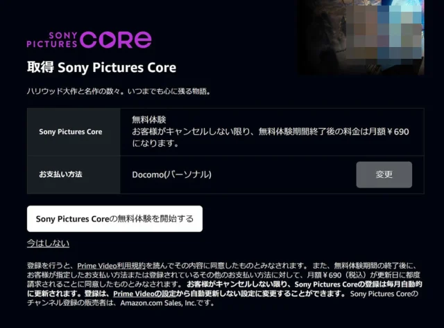 AmazonのPrime Videoで、ソニーの映画配信サービス「SONY PICTURES CORE」が利用できるようになりました。