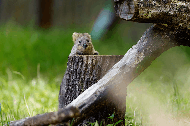 振り返った瞬間の表情がとても良くて、クオッカの愛嬌がしっかり伝わってくる一枚ですね。