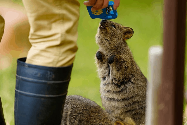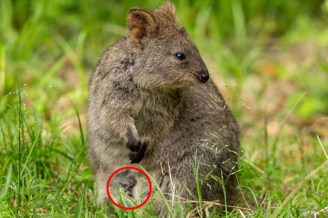 そして、こちらは私が見つけた、ちょっと珍しいショットなんですが、おなかのところに爪があるのがおわかりになりますか? これ、実際にはモジモジと動いていて、お腹のところに爪が生えてるの?と、不思議な感じだったのですが、クオッカはカンガルーの仲間で有袋類の動物になります。