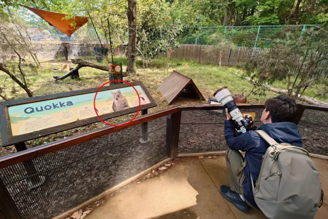 クオッカそのものに寄りすぎず、行動や仕草で魅せているあたりに撮影者の視点の面白さが出ていて、今後の作品も楽しみになる一枚だと思います。