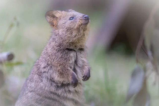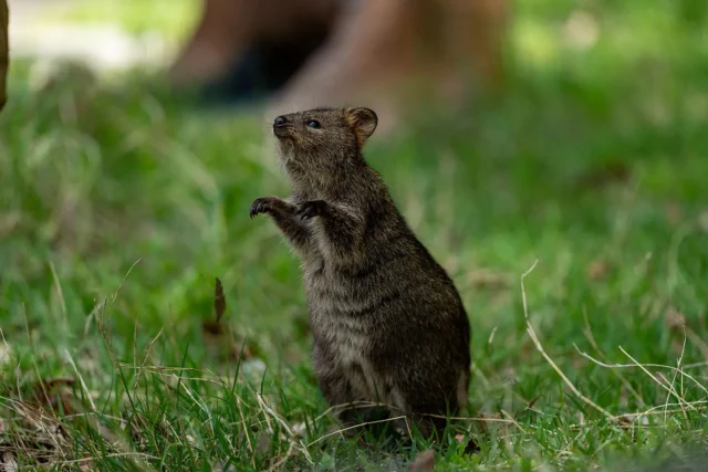 すっと立ち上がった瞬間のシルエットがきれいに出ていて、クオッカらしい愛嬌と緊張感が同時に感じられる一枚ですね。