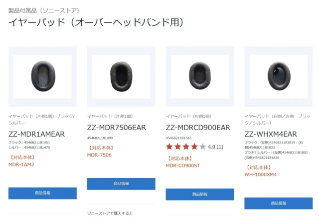 これまではイヤーパッドの交換をしたい場合は修理扱いで一度ヘッドホンをソニー修理センターへ預ける必要があったのですが、本日以降、パーツを取り寄せて交換対応がしやすくなります。
