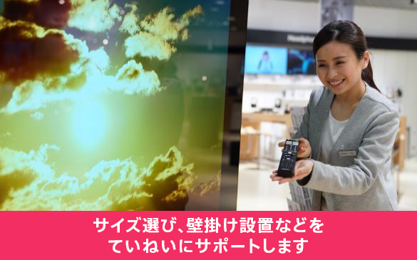 お部屋の広さやライフスタイルに合わせたサイズ選びから、映画・ドラマ・ゲーム・音楽まで、用途に応じた最適な視聴環境をスタッフがサポート。新たな生活のスタートを4Kテレビ ブラビアとともに楽しみませんか?
