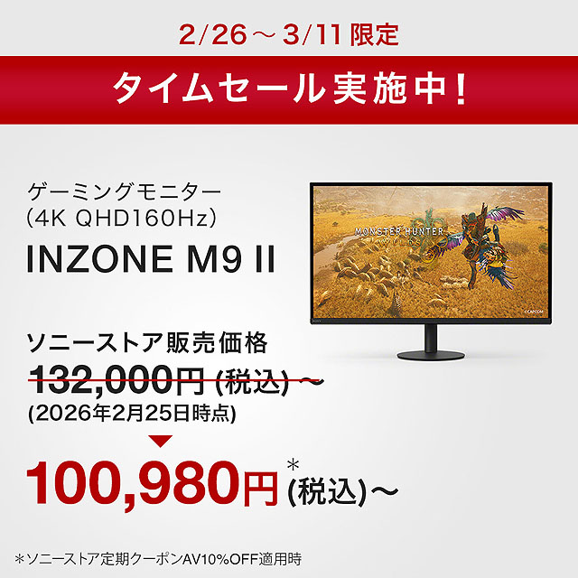 ソニーのゲーミングブランドINZONEのタイムセールがスタートしました。