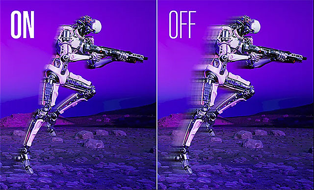 モーションブラーリダクションは残像感を軽減する機能で、動きの速いシーンで発生しがちなブレを効果的に抑え、より高い鮮明度を実現します。