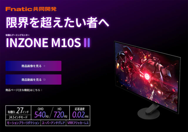ソニーのゲーミングブランド「INZONE」から、プロeスポーツチームFnaticと共同開発された有機ELゲーミングモニター『INZONE M10S II』が登場しました。