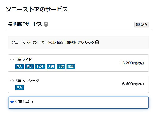 | 長期保証 | 5年ワイド:17,600円 5年ベーシック:8,800円 3年ベーシック:無償 |