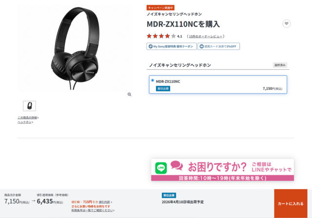 これにより ストア価格7,260円→7,150円となり、AV10%OFFクーポンを利用すれば6,435円で購入可能になります。
