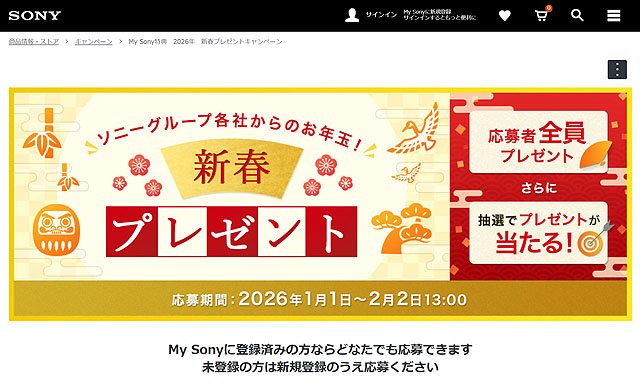 ★「My Sony特典 2026年 新春プレゼントキャンペーン 」のご応募はこちらから