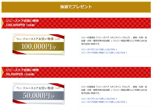 恒例のソニーストアお買物券が用意され、これがきっと一番人気なんでしょうね。