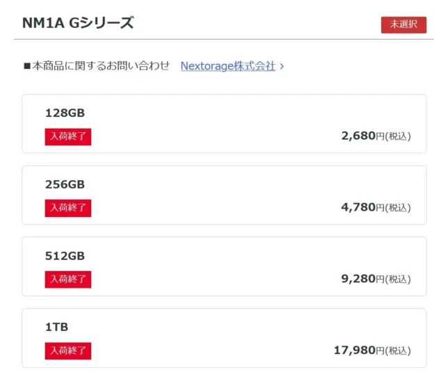 ■2月26日時点でのNextorage NM1A Gシリーズ販売状況