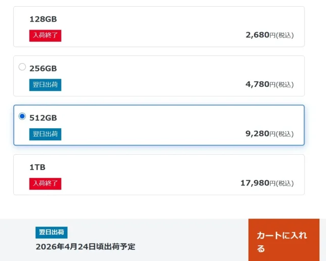 メモリー製品は全体に価格や在庫の動きが大きくなっている印象があります。必要な方は、販売状況をこまめに確認しておくのが良さそうです。
