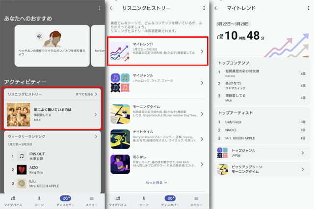 従来は再生履歴があるのと、年間ランキングの表示を1年に一度まとめてくれるだけでしたが「マイトレンド」は週次レポートを出してくれるようです。