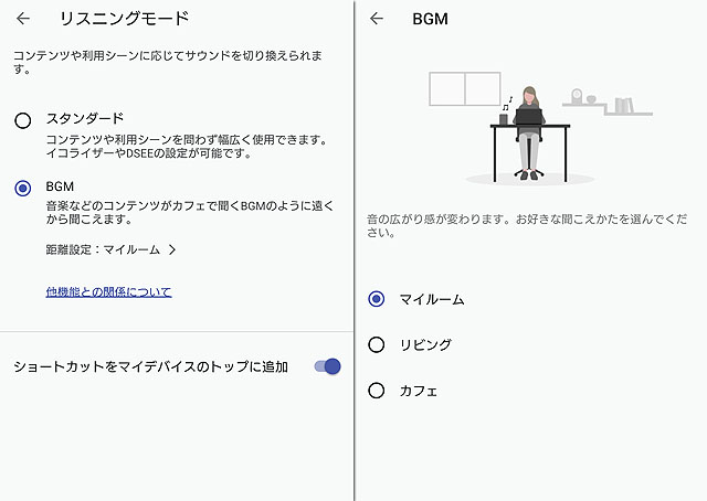 マイルーム、リビング、カフェと3段階の距離にすることができます。音楽をそれなりに聞きたいときはマイルーム、広い空間で、どこかで音楽が鳴っている、ようにするときはカフェ、という使い分けができます。