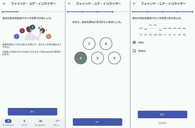 我々はエンジニアではないですし、そんなに細かく調整ができるわけではありませんがアプリに「ファインド・ユア・イコライザー」という機能が搭載されています。